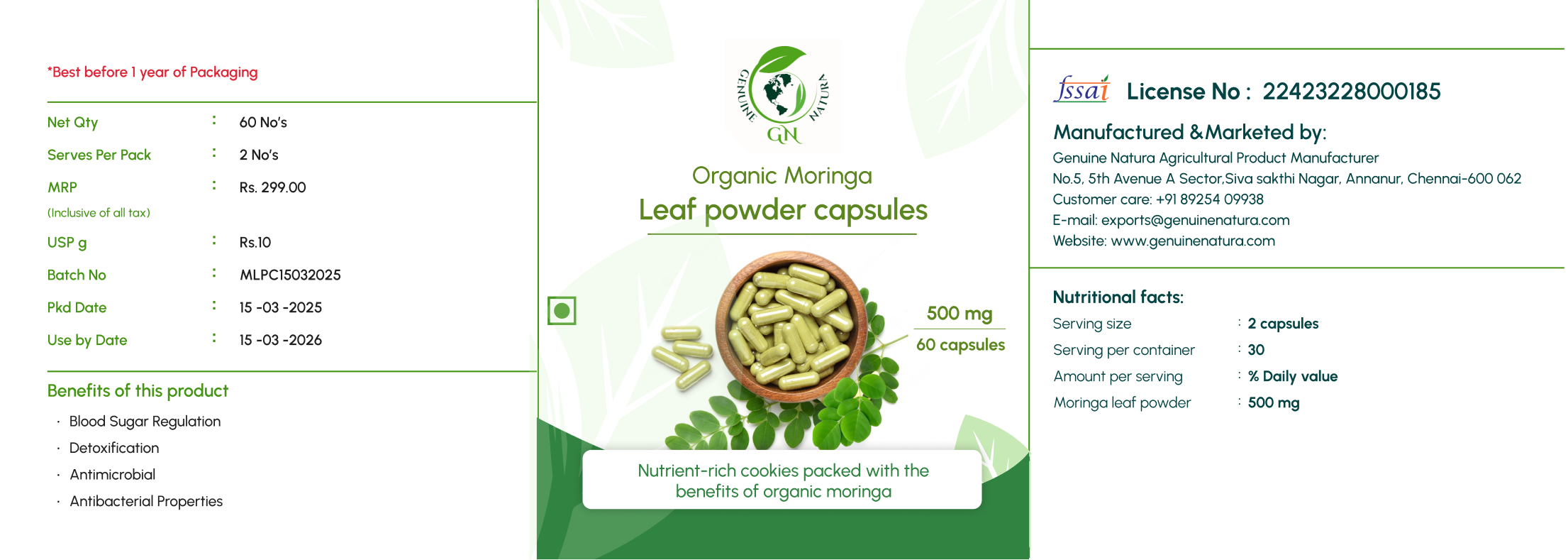 - 100% Natural & Organic – Sourced from carefully selected Moringa leaves.