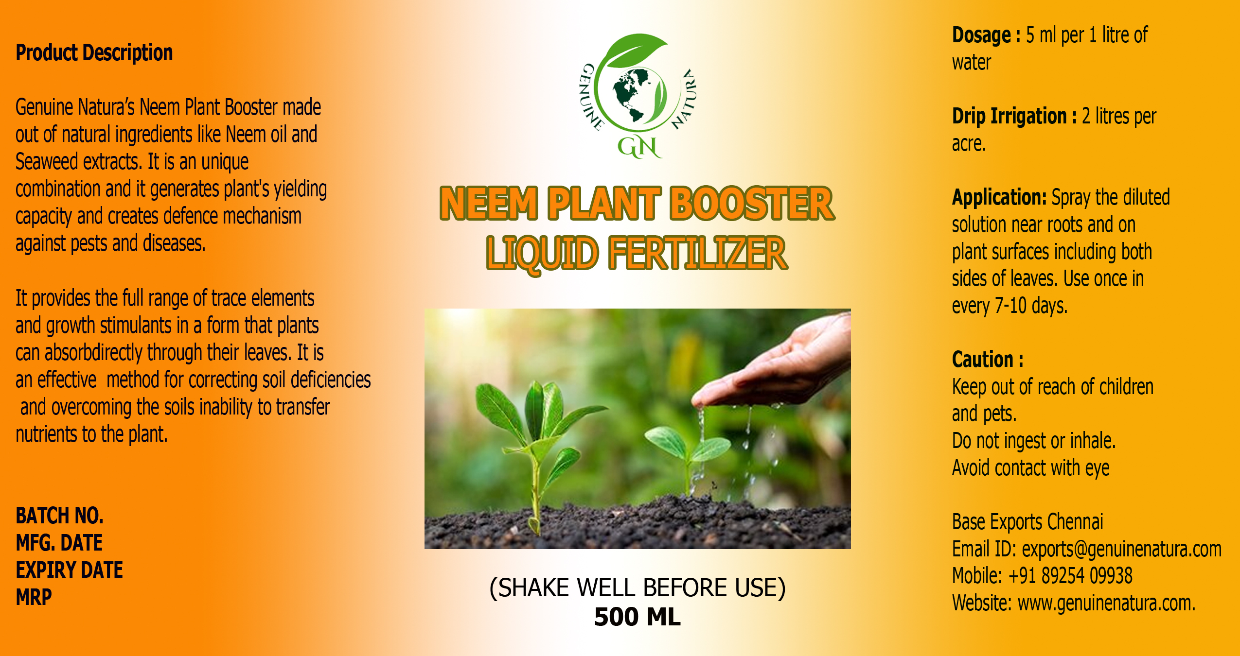 Neem plant boosters, derived from the neem tree (Azadirachta indica), are organic fertilizers and growth enhancers that promote plant health and soil fertility. They are primarily produced from neem cake, a byproduct obtained after extracting neem oil from the seeds. This cake is rich in essential nutrients like nitrogen, phosphorus, and potassium, along with bioactive compounds such as azadirachtin, which possess natural pesticidal properties. Manufacturers like SS Biochem India, Sunshiv Botanics, and Lakrishi Organics offer neem-based products that serve as slow-release fertilizers, improve soil structure, and act as natural pest repellents. These products are particularly beneficial for organic farming, enhancing crop yield and quality while promoting sustainable agricultural practices.